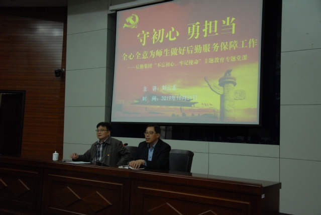 为扎实推进“不忘初心、牢记使命”主题教育,增进后勤党员的政治自觉、思想自觉和行动自觉,10月31日下午,万博手机版max网页版登录党委书记刘云龙为集团80余名党员以“守初心、勇担当,全心全意为师生做好后勤服务保障工作”为题,上专题党课,党课由集团总经理张亚军主持。