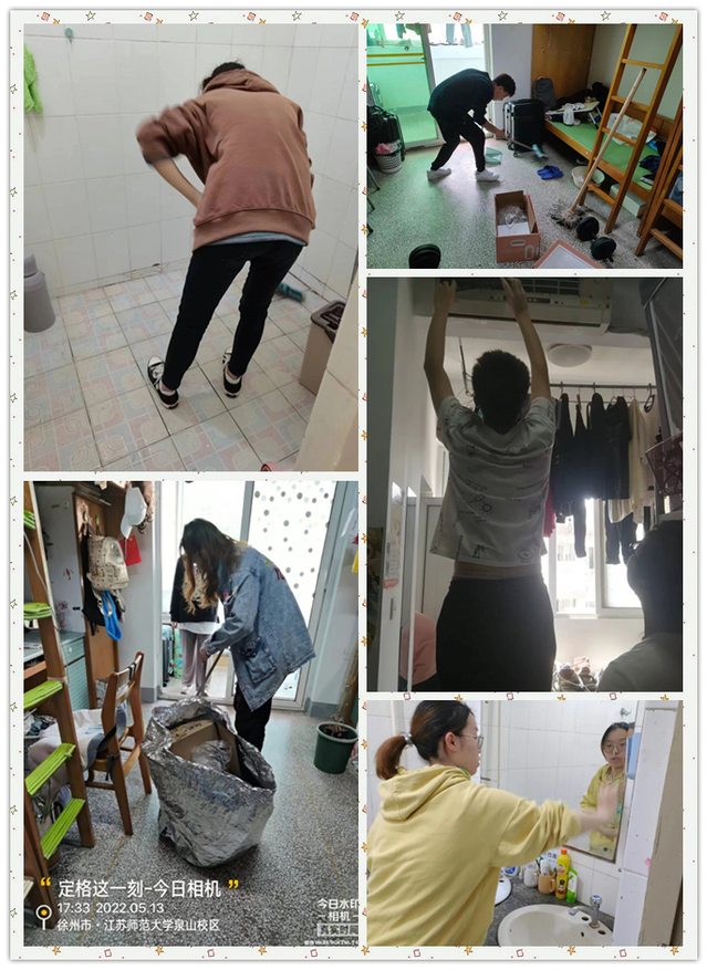 在五月的青春里,同学们按照老师的指导示范,纷纷行动起来,“断舍离”扔掉杂物、整理宿舍用品、清理打扫卫生。经过一个上午或下午的劳动,卫生间污垢清除掉了,地面、墙面的瓷砖露出了本来面目;室内的地面整洁了,鞋子整整齐齐排在了鞋架子上,衣服叠整齐后放入了衣橱;书籍上了架,乱拉扯的接线板归了位,学习空间温馨舒适……